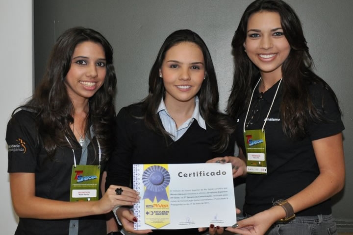 Na nossa foto em destaque hoje, a jornalista Monara Marques, apresentadora do Globo Esporte goiano, ladeada por Mirelle Vitorino (esquerda) e Bianca Vitto (direita) na 7ª edição da Semana de Comunicação da IESRIVER - Faculdade Objetivo.