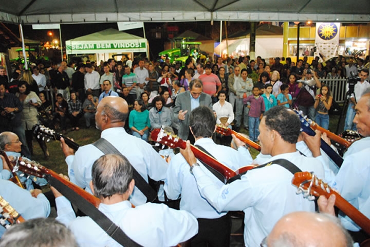 Com um cenário rústico e cheio de comidas típicas de aguçar o paladar, o cheirinho de rapadura e biscoito de polvilho frito lembravam os quitutes feitos pela vovó. Neste ambiente propício criado na Exposição Agropecuária de Rio Verde a Orquestra Municipal de Sanfoneiros e Violeiros de Rio Verde apresentou várias canções do sertanejo raiz.
