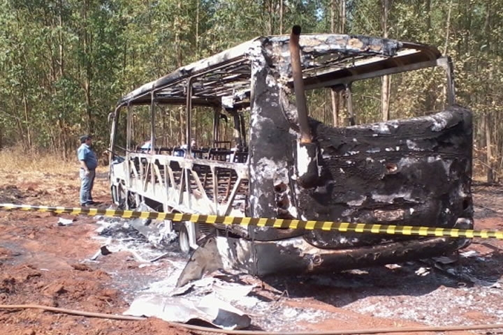 Um ônibus escolar com 20 pessoas pegou fogo e ficou totalmente destruído após tocar em um fio de alta tensão que havia arrebentado de um poste e ficado suspenso no ar, na tarde desta sexta-feira (16), em uma estrada vicinal de Rio Verde.
